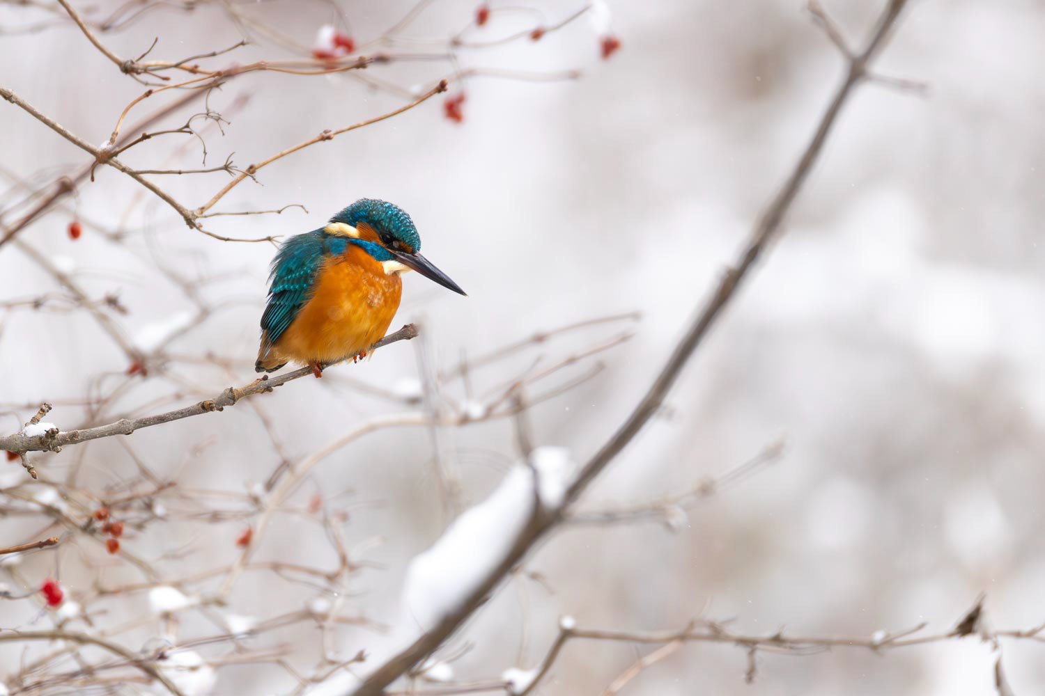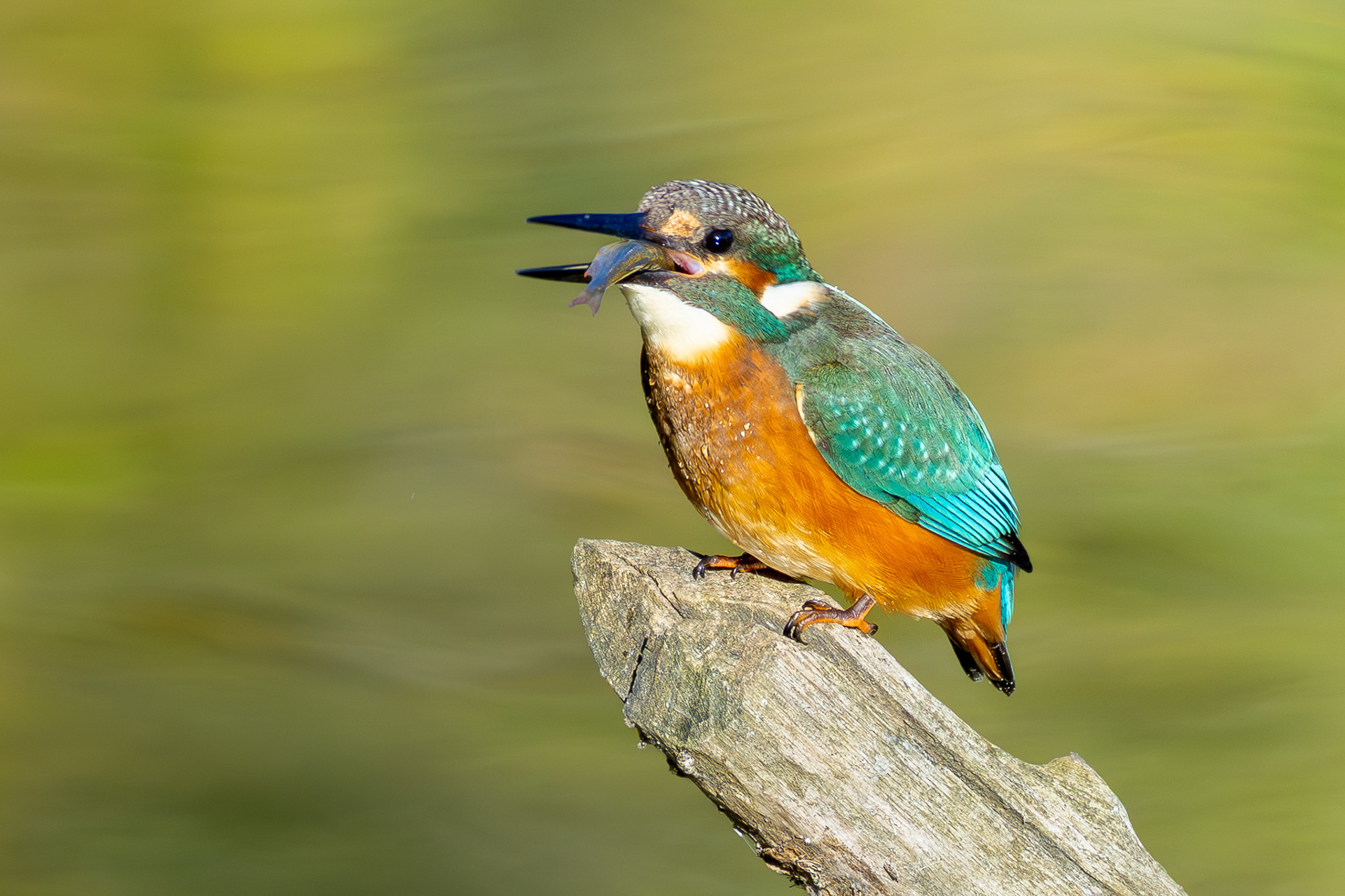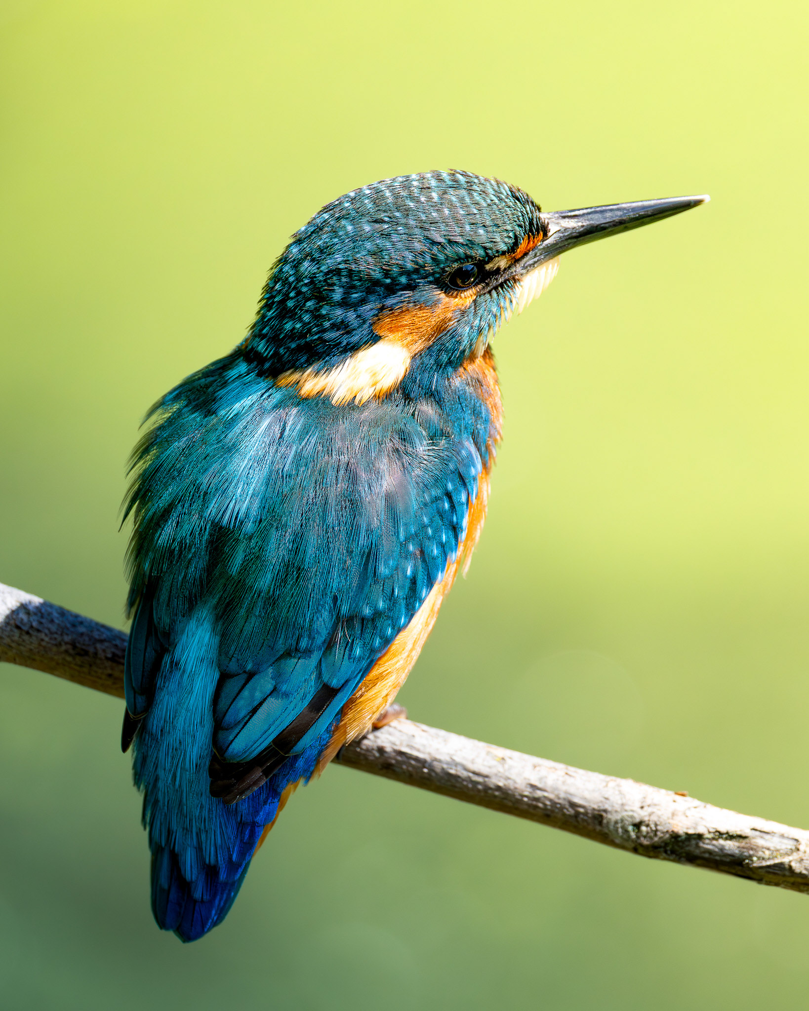 Das Federkleid des Eisvogels ist unverwechselbar: Die Oberseite von Kopf, Rücken und Flügeln schillert je nach Lichteinfall in intensivem Kobaltblau bis Türkisfarben, während die Unterseite von Brust und Bauch rostorange gefärbt ist. Dieses Farbspektakel entsteht nicht primär durch Farbpigmente, sondern durch die Brechung des Lichts in der Federstruktur, was dem Eisvogel seine metallisch glänzende Erscheinung verleiht. Trotz dieser Buntheit ist der Eisvogel in seinem Lebensraum oft überraschend gut getarnt. Männchen und Weibchen sehen sehr ähnlich aus, wobei das Weibchen meist einen rötlichen Fleck an der Basis des Unterschnabels aufweist, während der Schnabel des Männchens fast vollständig schwarz ist.