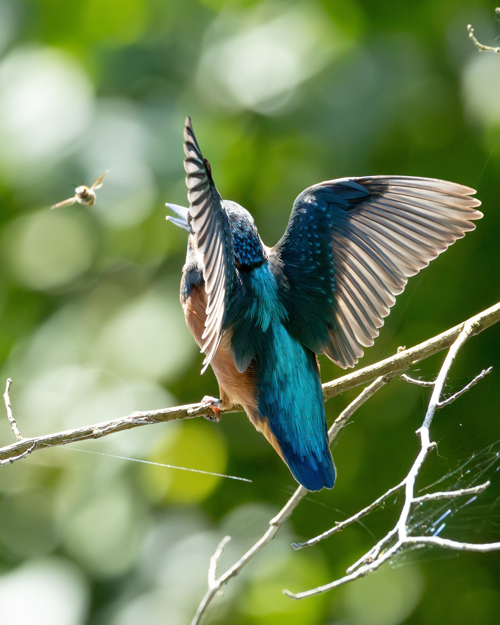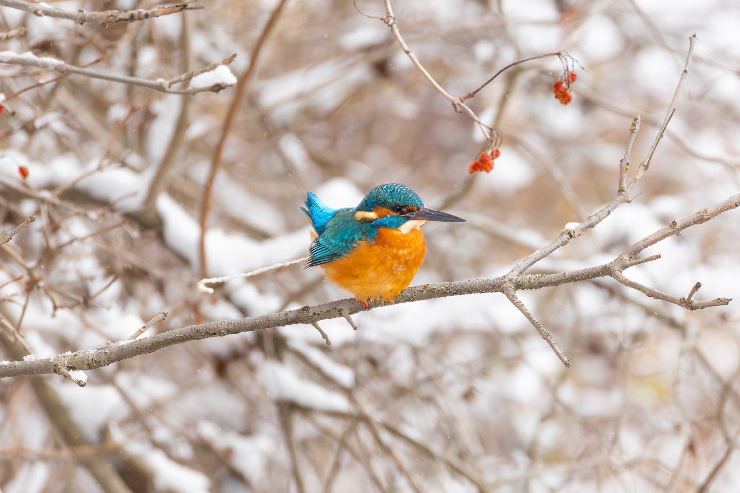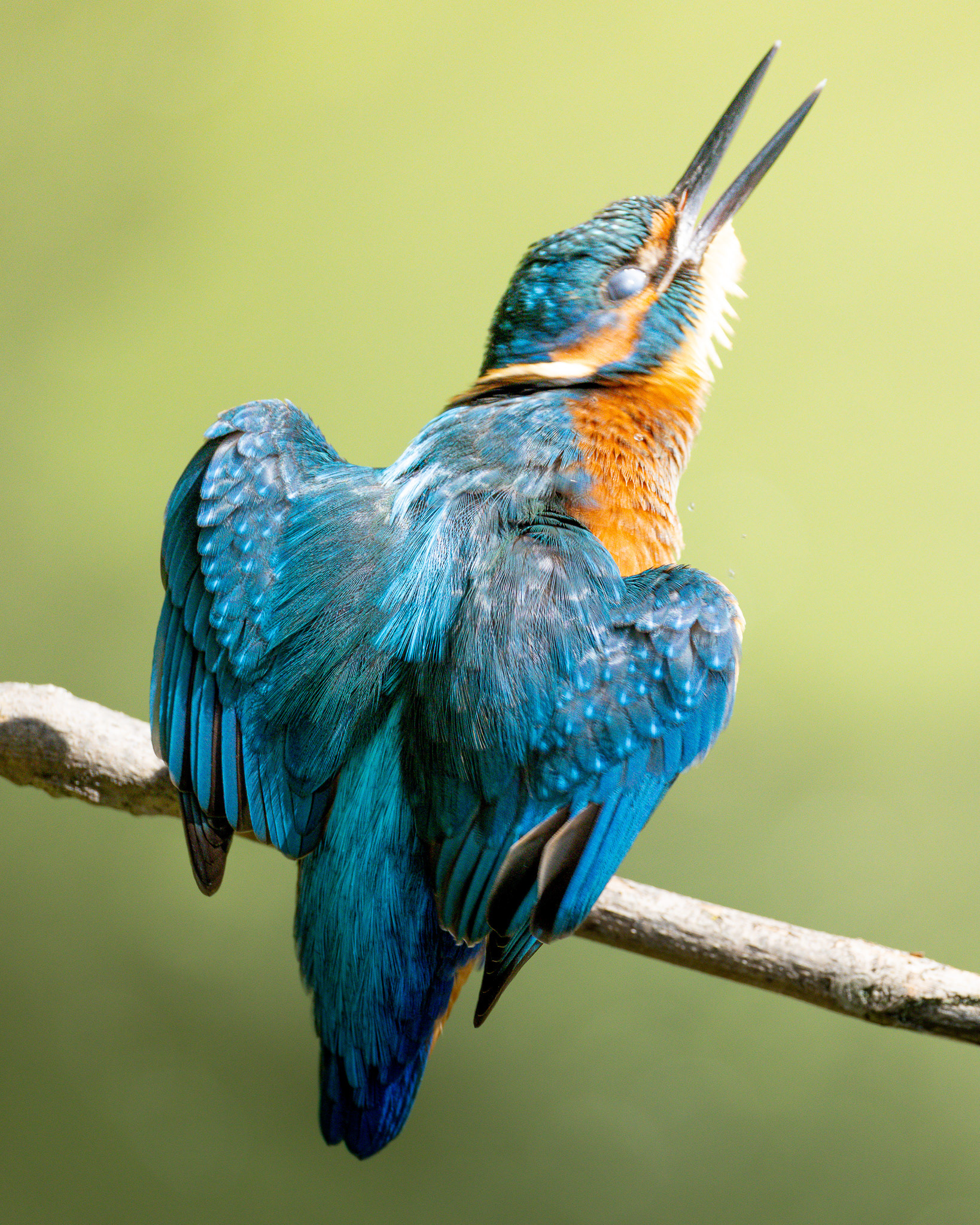 Das Federkleid des Eisvogels ist unverwechselbar: Die Oberseite von Kopf, Rücken und Flügeln schillert je nach Lichteinfall in intensivem Kobaltblau bis Türkisfarben, während die Unterseite von Brust und Bauch rostorange gefärbt ist. Dieses Farbspektakel entsteht nicht primär durch Farbpigmente, sondern durch die Brechung des Lichts in der Federstruktur, was dem Eisvogel seine metallisch glänzende Erscheinung verleiht. Trotz dieser Buntheit ist der Eisvogel in seinem Lebensraum oft überraschend gut getarnt. Männchen und Weibchen sehen sehr ähnlich aus, wobei das Weibchen meist einen rötlichen Fleck an der Basis des Unterschnabels aufweist, während der Schnabel des Männchens fast vollständig schwarz ist.