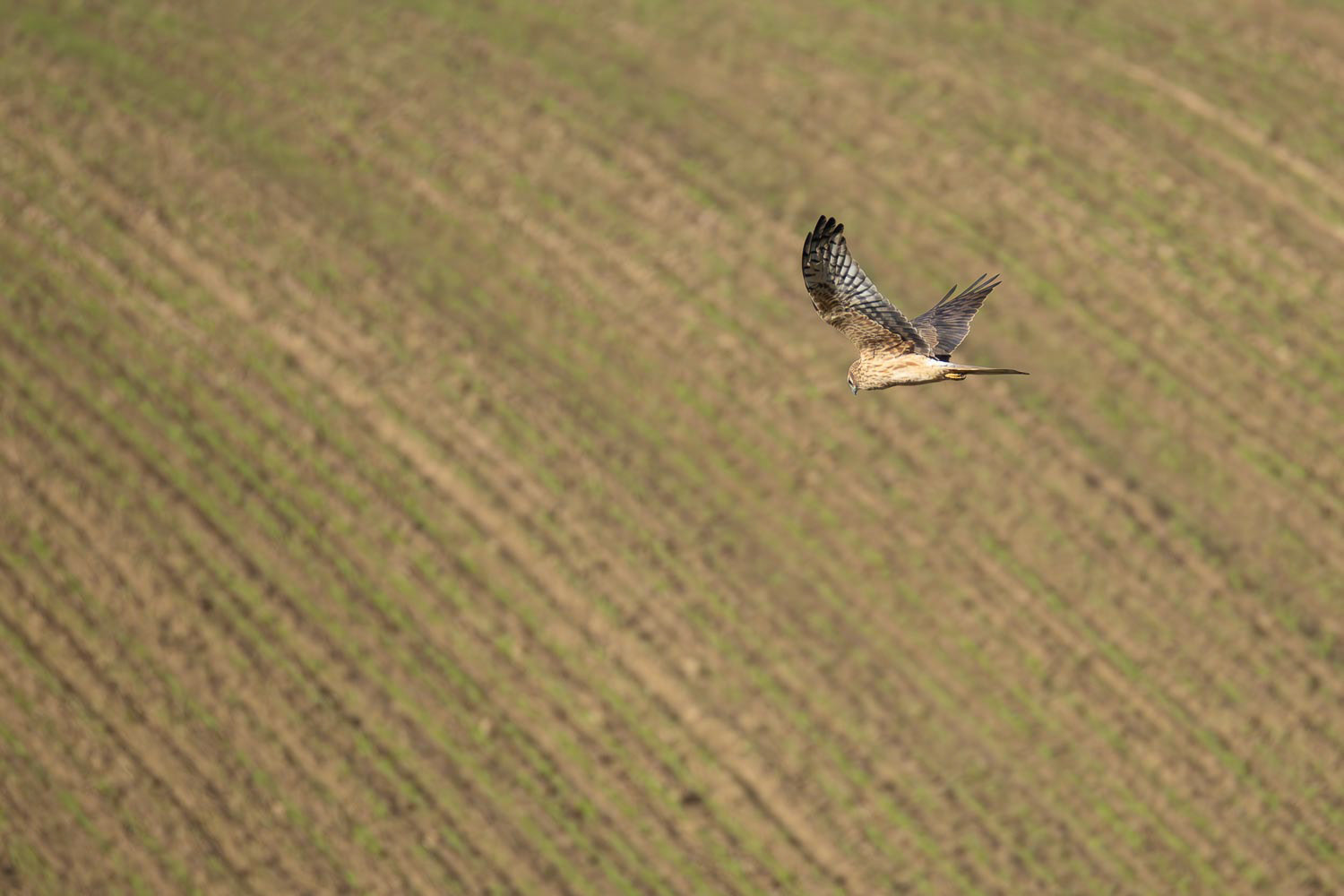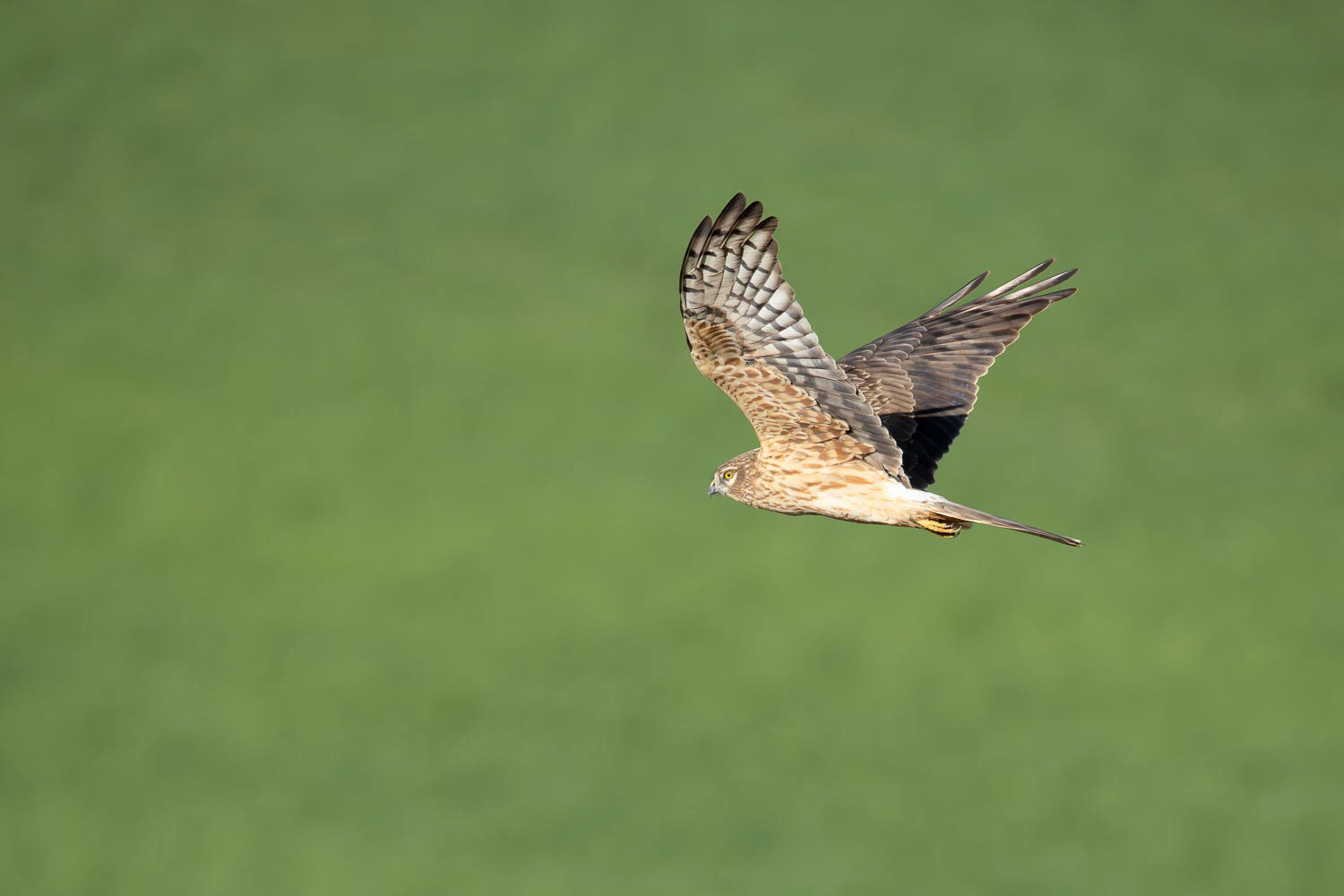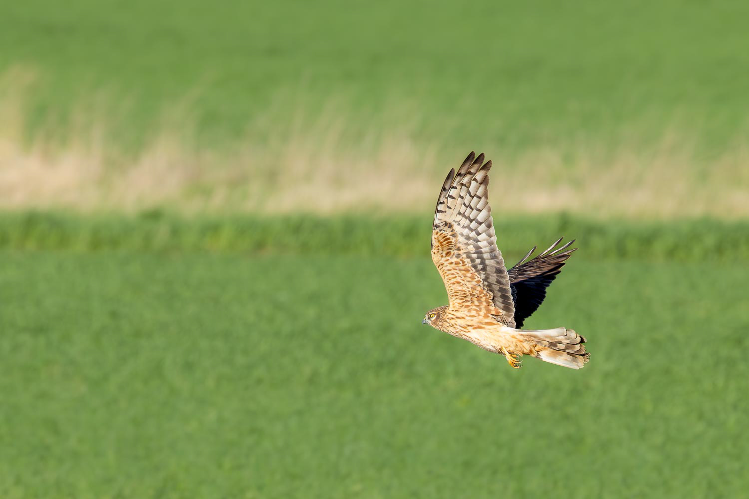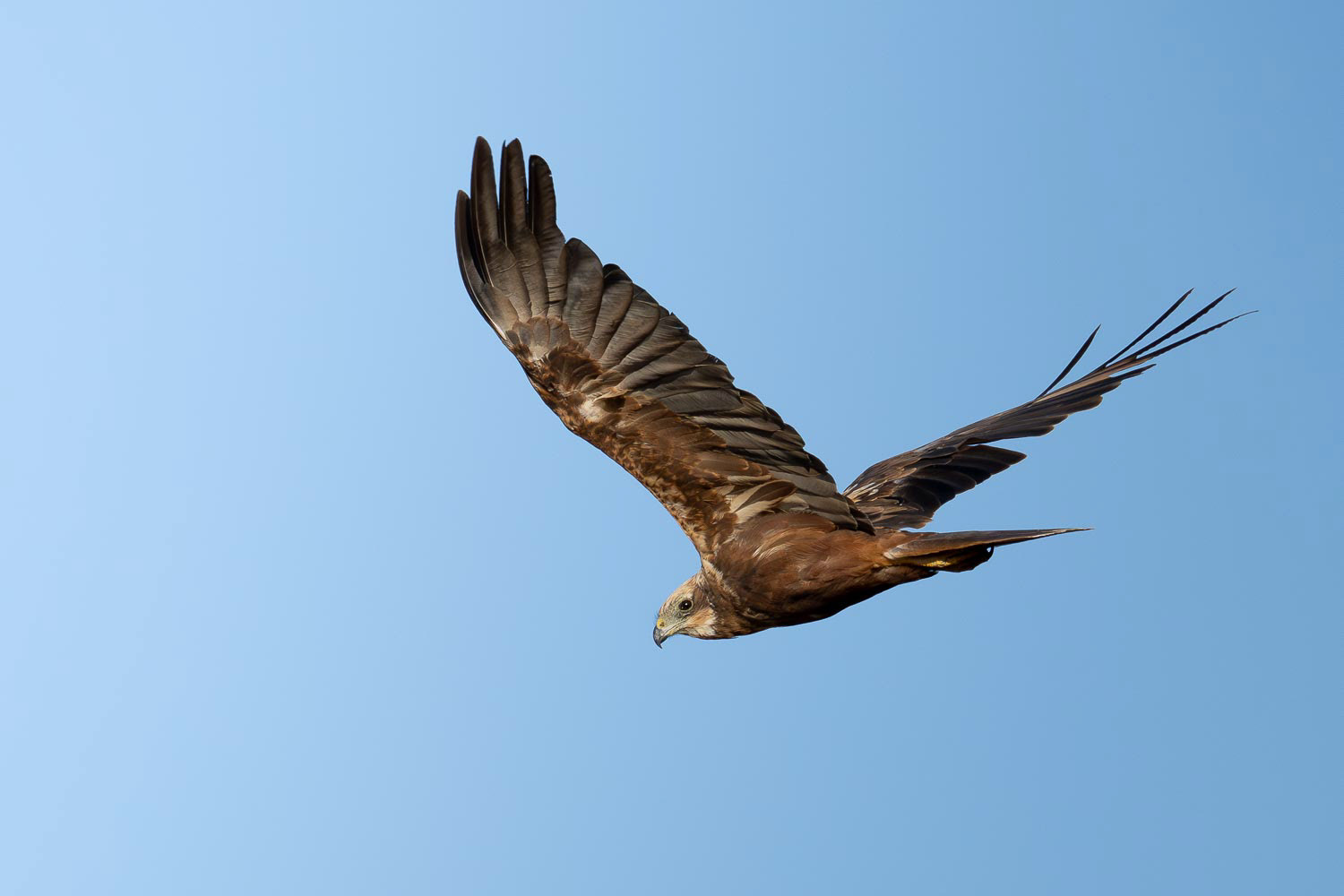 Beide Geschlechter halten die Flügel beim Segeln und Gleiten typischerweise V-förmig nach oben, ein Merkmal, das alle Weihen teilen.