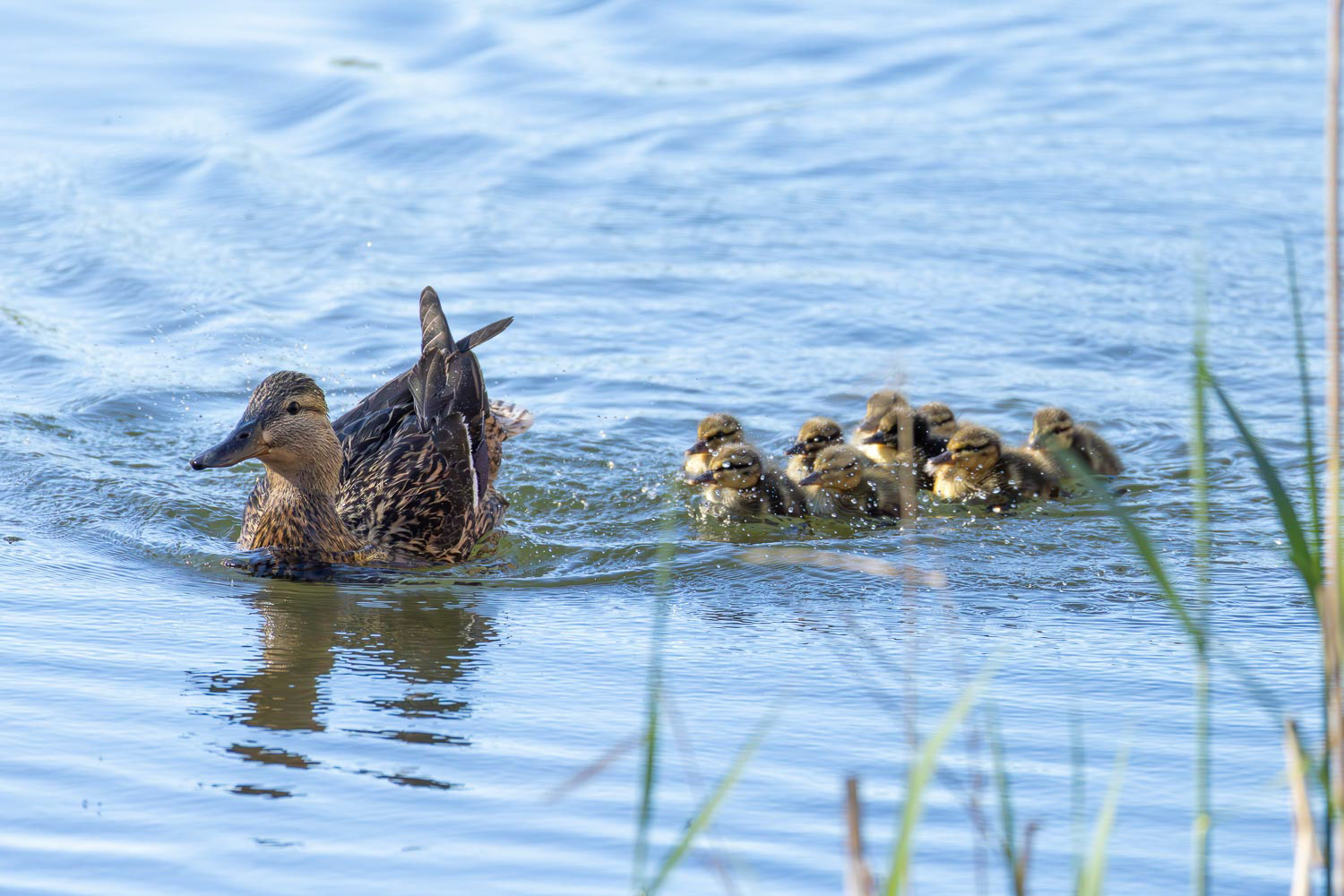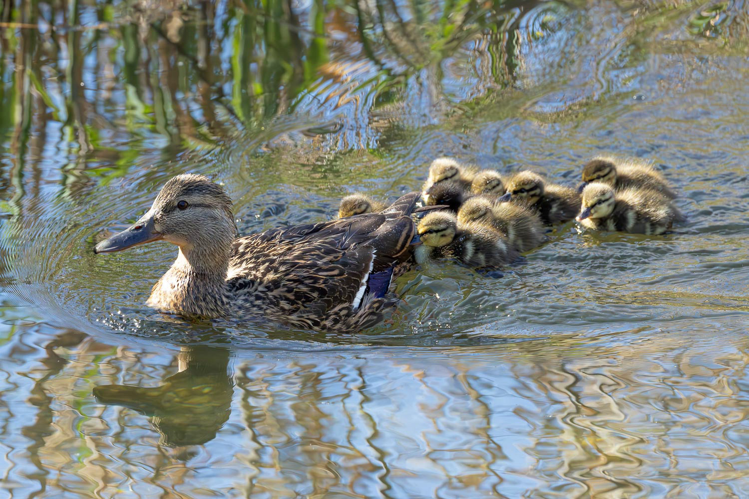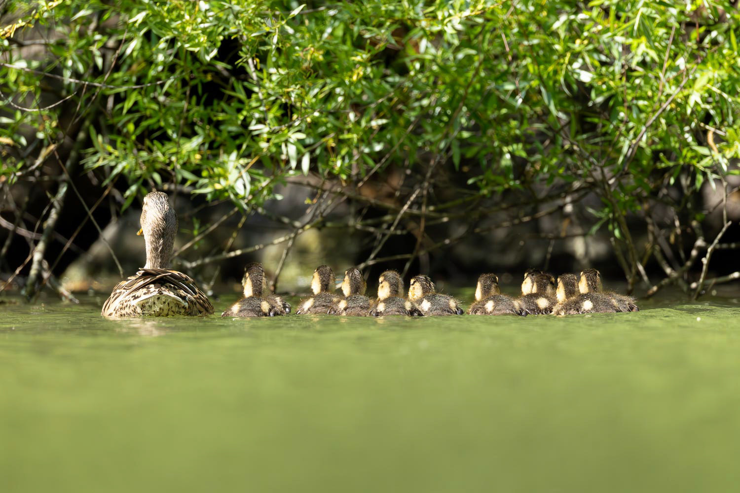 Stockenten sind Gründelenten, was bedeutet, dass sie zur Nahrungssuche den Kopf und den Vorderkörper unter Wasser tauchen, während der hintere Teil des Körpers und der Schwanz aufrecht aus dem Wasser ragen. Sie sind extrem anpassungsfähig und bewohnen Seen, Flüsse, Teiche, Sümpfe und sogar kleine Gartenteiche.